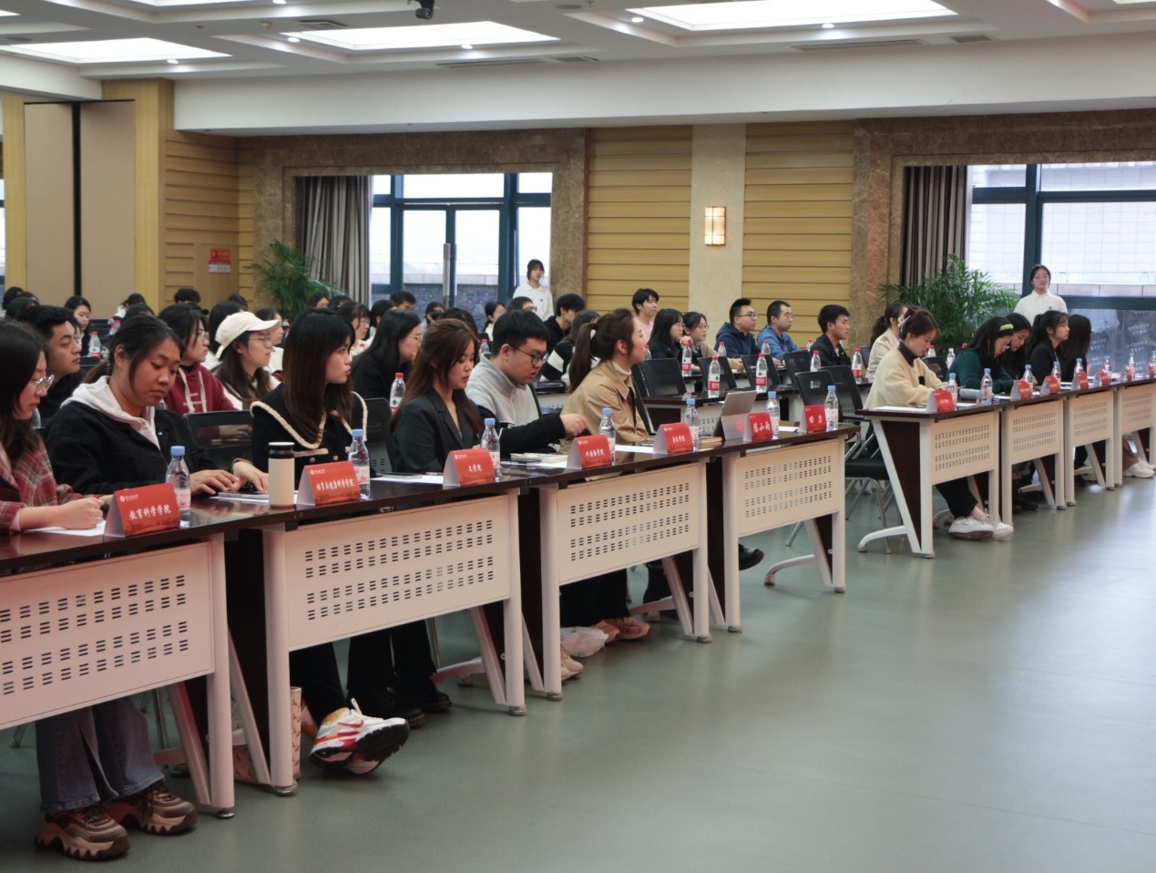 辅导员工作室成员2021级辅导员陈小雨老师和2020级辅导员潘登老师,来自17个学院的研究生复试助力团和来自各学院的学子们。活动由潘登老师主持。