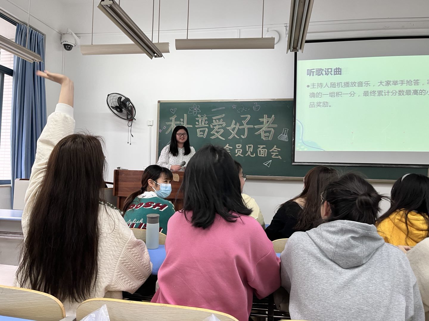 科普爱好者协会会员见面会在掌声中结束,在欢声笑语中落下帷幕。本次见面会利于增进协会会员之间的认识了解,扩大自身的交际范围。通过这次见面会,充分激发了干事们潜在的思想作风和内在品质,培养了团队的合作精神,同时激发了荣誉感和归属感。虽然每一次相聚都是那么短暂,但我们能够在科普爱好者协会相遇,在生机勃勃的春天相遇,共同陪伴着彼此前进,便已足矣。
