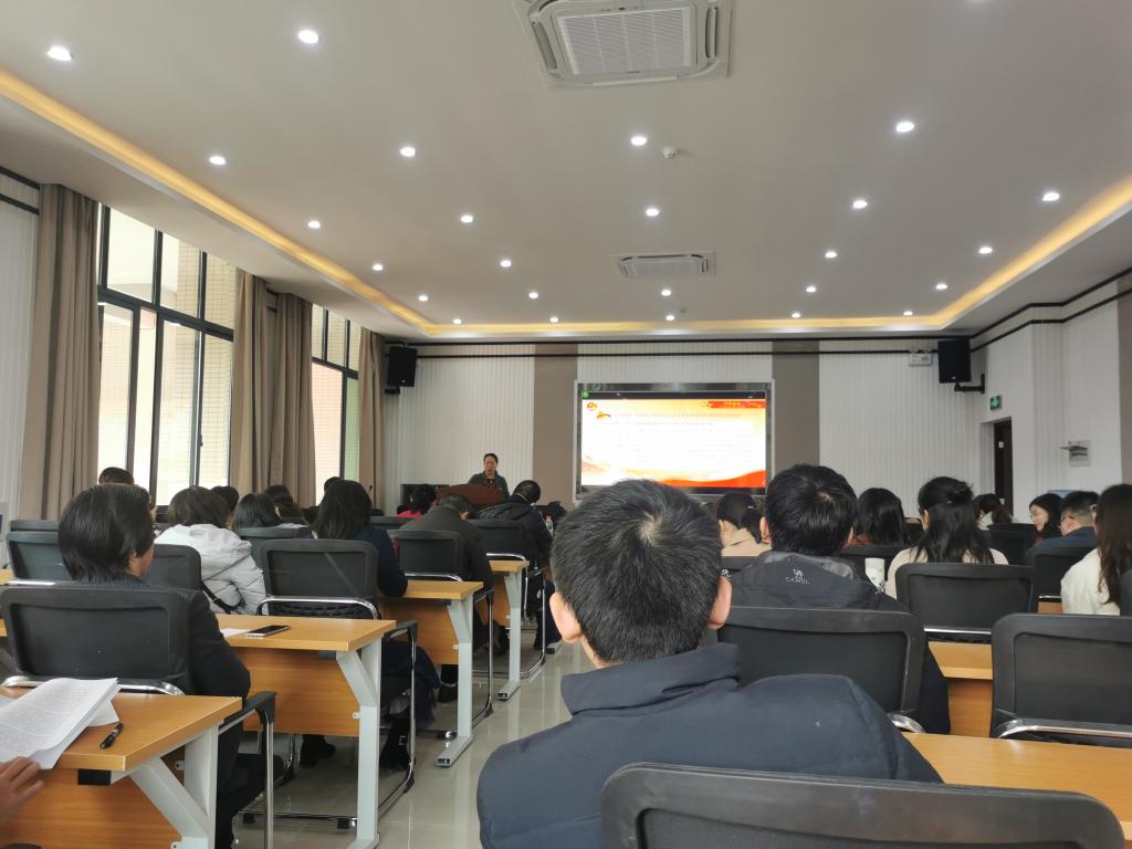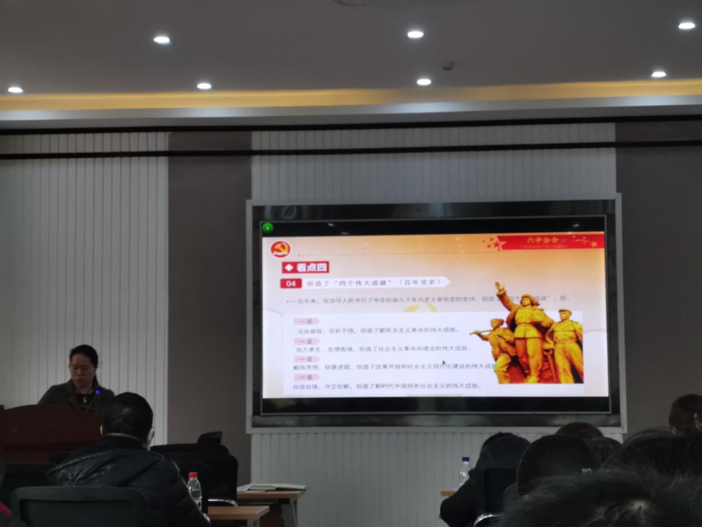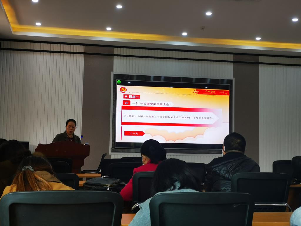 为深入学习宣传贯彻党的十九届六中全会精神,122少妇白洁 党委利用学院集中时间召开面向全体教职员工的关于党的十九届六中全会精神专题学习研讨会,会议由学院党委副书记卢洪英同志主持,并做专题党课报告