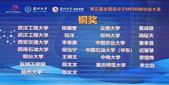 2025711-12日,由教育部高等学校材料类专业教学指导委员会、国家级实验教学示范中心联席会材料/纺织服装学科组指导,全国高分子材料创新创业大赛组织委员会主办,厦门大学承办的第五届全国高分子材料创新创业大赛决赛于厦门大学思明校区成功举行。
