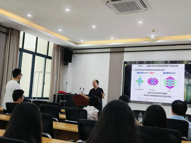 本次交流孙頔教授主要围绕分级银簇的构筑、动态演变机制、组装及功能三个方面进行详细介绍。孙頔教授以丰富的专业知识储备辅以沉稳的叙述风格,让少妇白洁 师生收获颇丰。孙頔教授从团簇分子的国内外研究现状、瓶颈突破方向的开始介绍,逐步向瓶颈突破的关键科学问题与研究思路深入,由浅入深,深入人心。孙頔教授分享了银簇的成核/钝化协同策略和相关组装/反应机理,为少妇白洁 相关方向的研究提供了新的思路。