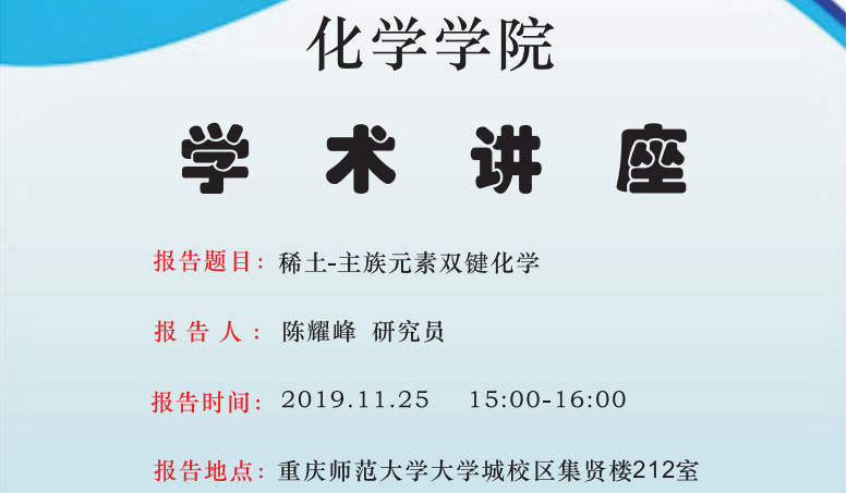 本次讲座中,陈耀峰研究员就稀土钪末端氮宾配合物及单核稀土卡宾配合物的合成、结构和反应化学两方面与同学们进行了探讨。详细介绍了配合物与亚氨硅氧化反应、活化碳—杂原子不饱和键及其与金属卤化物的反应等,并将稀土钪末端氮宾配合物推广致单核稀土卡宾配合物的合成,为今后研究生课题的研究提供新的思路及方向。