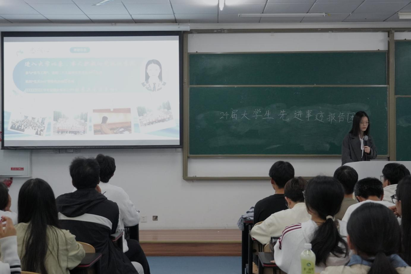 报告会伊始,优秀学生代表许灿作为主讲人,围绕“自律与成长”“科研与实践”“担当与理想”等主题,向学弟学妹们分享了自己在大学四年中的学习心得与实践经验展现了新时代大学生自强不息、全面发展的青春风貌。
