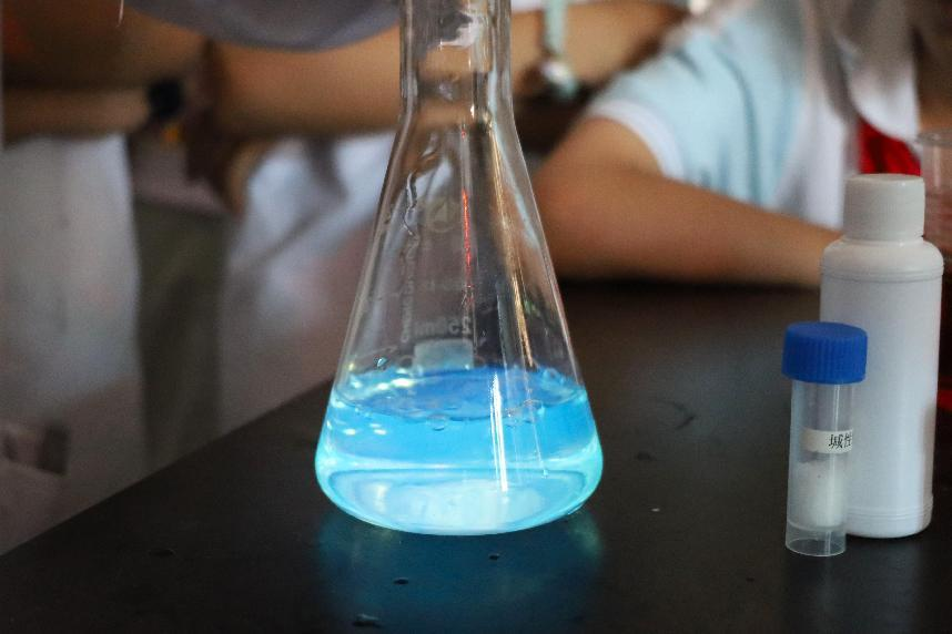 接着小朋友们走进实验室,在志愿者的引导下,同学们动手实践“蓝眼泪”实验,鲁米诺溶液在催化剂作用下发出的淡蓝色光芒,仿佛将夜空的星星装进了容器;“蓝晒”实验则让同学们化身小小艺术家,利用化学原理制作出独特的图案。在手工皂DIY活动中,同学们将透明皂基融化,加入喜欢的色素,制作出了一块块独一无二的透明手工皂,感受科学研究的氛围。