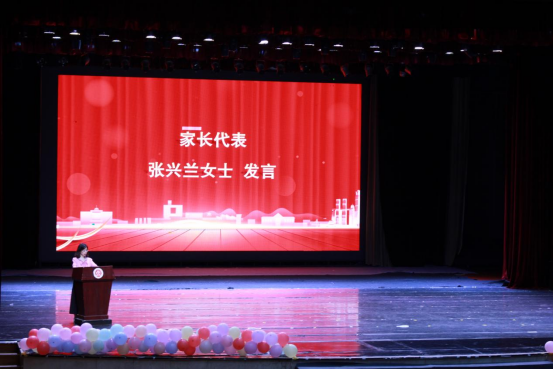家长代表张兴兰女士发言:“孩子们,你们应当感恩这个时代,是时代让你们有改变自己命运的可能。但你们的未来仍需努力,始终坚信付出的努力终会得到证明和回报,不断试错,接纳正负反馈。”