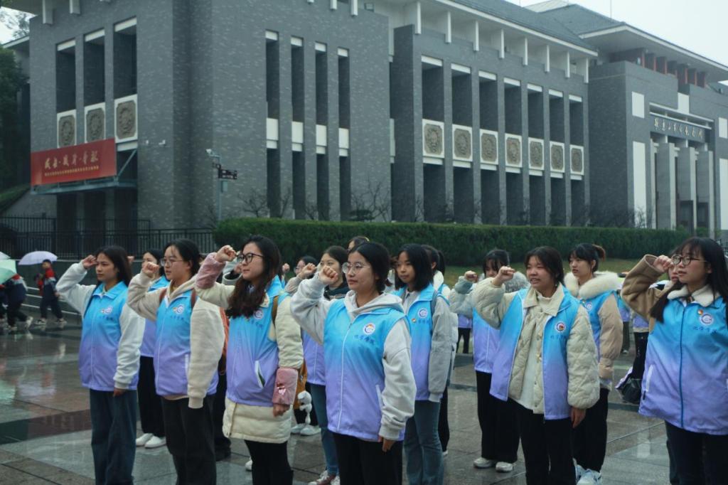 党委副书记蒋红的带领下,各学生党支部党员、入党积极分子代表、申请入党人代表,共计48人共赴歌乐山烈士陵园,开展“关于重庆历史、红岩精神和重庆现代化建设成就”的主题党日活动,缅怀革命先烈,传承红色基因,汲取信仰力量。