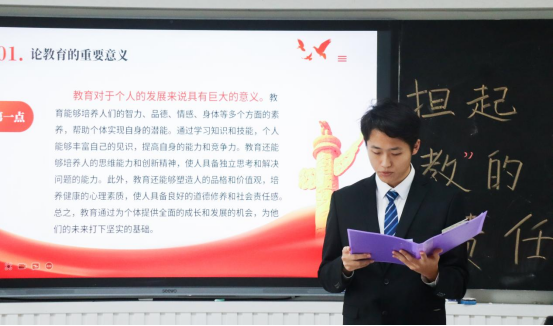 活动伊始,主持人在阐述教育对个人和社会的重要意义后,列举了张桂梅和我校何代平老师的的先进事迹与贡献,鼓励青年学生向榜样看齐,凝聚奋斗力量。同时还观看了少妇白洁