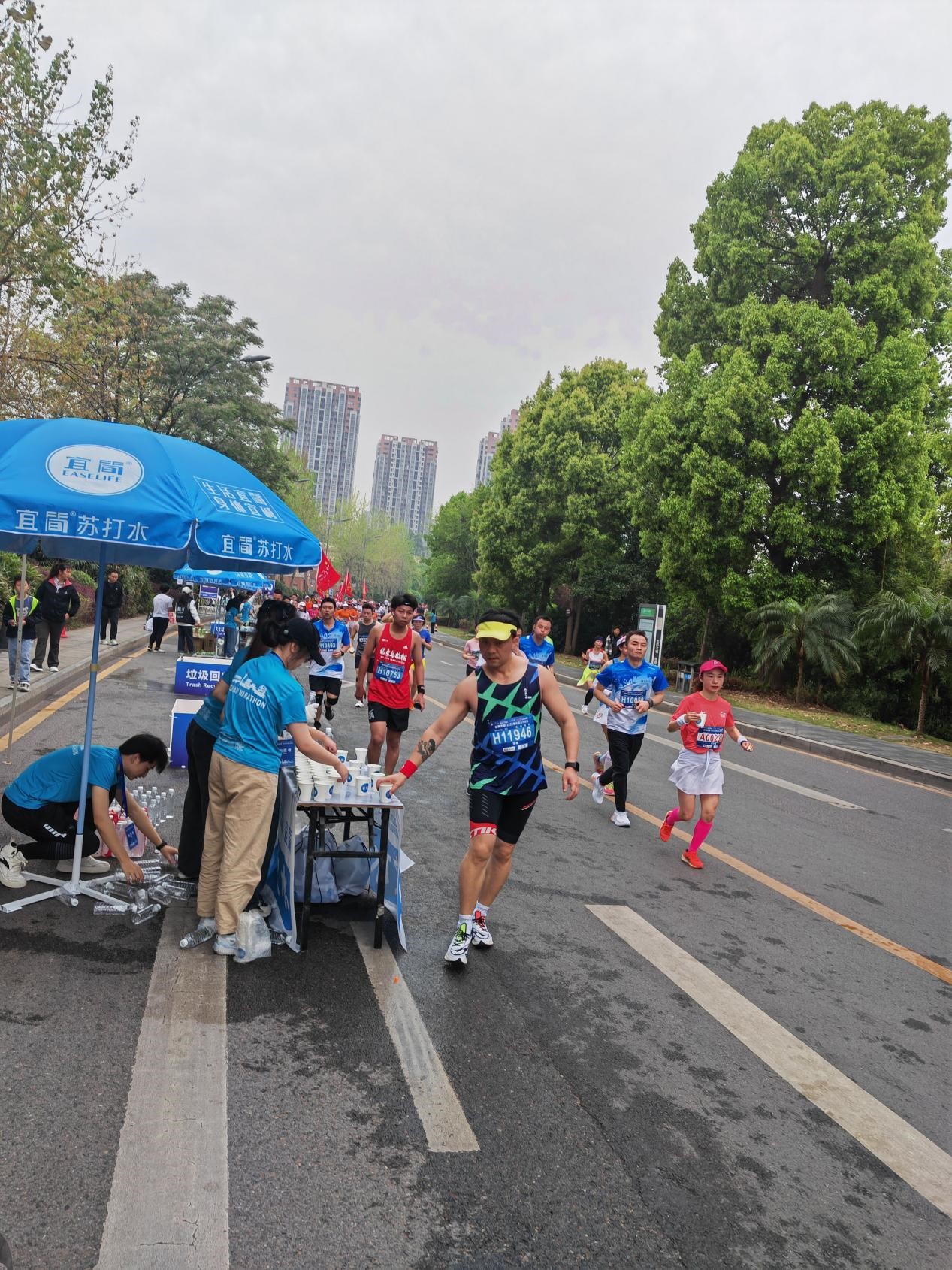 待清朗的第一缕日光照射大地,彼时一声枪响,比赛正式开始。此时是7:30,选手们从零公里处开始了他们的征途。他们着装轻便,怀着热情激昂的心情,迈着坚定轻快的步伐,笔直向前。当然志愿者们并没有停下手中的工作。他们不仅要满足选手们的需求,还要及时补充桌上的水源等物资以方便后续选手补水。虽然手上动作不停,但志愿者们仍能做到保持桌面整洁,毫无凌乱姿态。同时,志愿者们还要引导选手和及时捡拾赛道上的垃圾,打造干净的比赛环境。在赛道外,志愿者们还微笑着为选手们加油鼓劲、呐喊助威,为他们平添了无限多的动力。