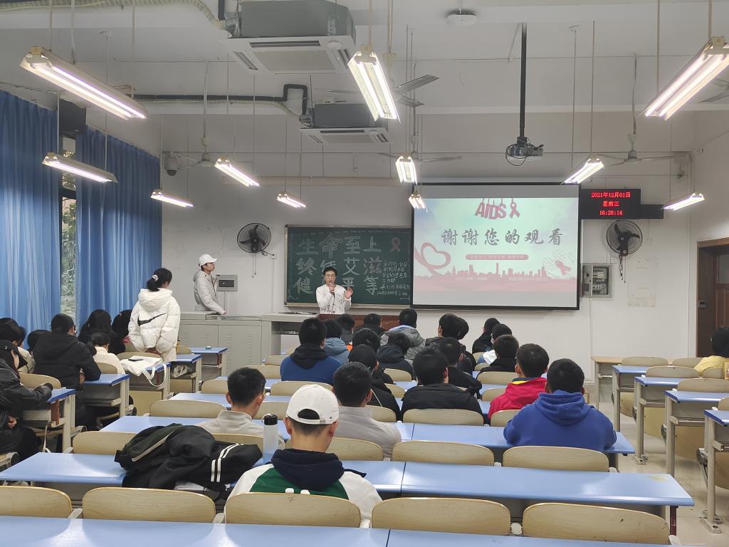 活动最后,魏涛同学重点提到,今年世界艾滋病日我国的主题“生命之上,终结艾滋,健康平等”,希望同学们知艾防艾,主动检测,共享健康,与此同时,对艾滋病病毒感染者和艾滋病病人给予同情和理解,做到不歧视,不嘲笑。至此,本次活动取得圆满结束。