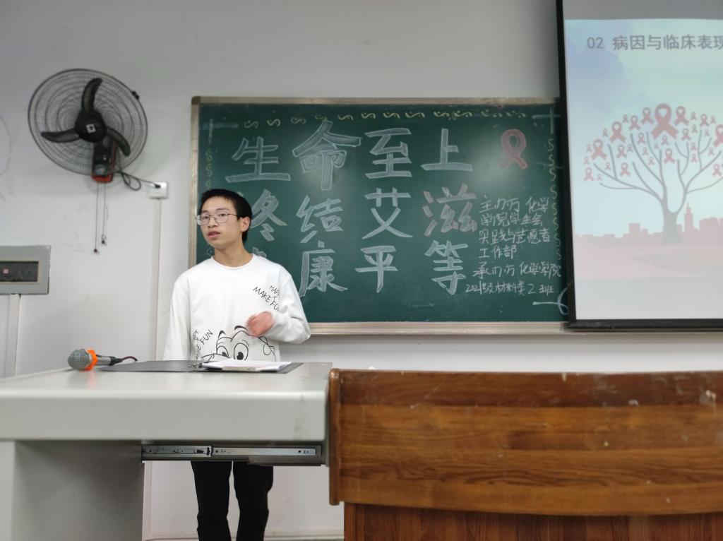 学生会实践与志愿者工作部主办,21级材料类二班承办的“艾滋病宣传”主题班会于弘德楼14102教室举办。