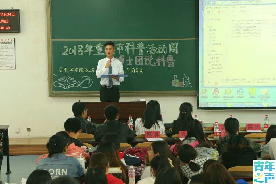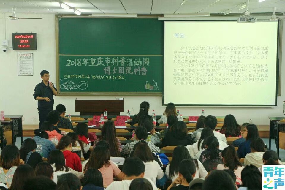 科学的世界是一个神秘又有趣的地方,人们会惊讶于先进的科技,也会因为科学而改变自己的生活习惯。2018年5月24日,在由少妇白洁 团总支学生会发起的“魅力化学”文化节的闭幕式上,有请到了嘉宾:少妇白洁 党委副书记卢洪英书记、教科办主任文静老师,团总支书记及17级辅导员于斌老师、14级辅导员刘冰老师;同时也有幸邀请博士老师王燚、袁华、胡晋川三位老师进行博士团说科普,让我们从他们演讲中来理解科普、受惠科普,最后参与科普。活动开始,王燚老师以咖啡来开头,讲述了喝咖啡可能会得癌症而对丙烯酰胺展开了研究,发现咖啡由于在超高温下会产生丙烯酰胺而导致慢性中毒,然而市场上的速溶咖啡中其含量最高。并且发现红烧肉中就含有此类化学物质。袁华老师给大家介绍了航天材料的一些作用。航天材料是材料化学的一大重点,航天工程也是国力的体现,国家花重金来研发先进的航天材料,一直以来,科学家们孜孜不倦的发明能够更好适应于航空的材料,不只是耐高低温,耐腐蚀,还增加了许多其他的功能,比如寻找更轻的材料等。并且袁华老师也指出了现在中国科技需要进步的一些地方,还待同学们去开发,研究。最后胡晋川老师的演讲让我们了解到2016年诺贝尔化学奖获得者发明的“全世界最小的机器”以及其原理,让大家的眼界有所拓展。科学的研究改善了人们的生活,一些不健康的生活方式也因为化学与科学在悄悄改进。随后,是观看"魅力化学文化节"活动视频回顾,并对在此次文化节中表现突出的个人进行表彰。“美丽化学摄影奖”获奖代表有王奕晗、涂兰柯、罗亚;“优秀三笔字奖”获奖代表有2017级化学师范2班陈娇、师范3班冯子佳、师范4班王璐;知言精英班选拔代表有杨霜霜、蒋洁、欧婷。活动最后由学院党委副书记卢洪英对此次活动进行总结发言。卢书记表达了自己对化院学子的感谢和殷切希望,也鼓励大家能将下一届“魅力化学”文化节举办得更加精彩。化学的魅力不只在于研发,也在于生活。我们既可以潜心研究,为国家,为世界做出奉献,也可以利用化学的神奇而为生活增添色彩。化学不只于此,这,才是他的魅力。了解化学的魅力也是此次“魅力化学”文化节举办的主要目的,他更是化院学子提升自己,展示自己的平台,让我们一起期待下一届的到来!
