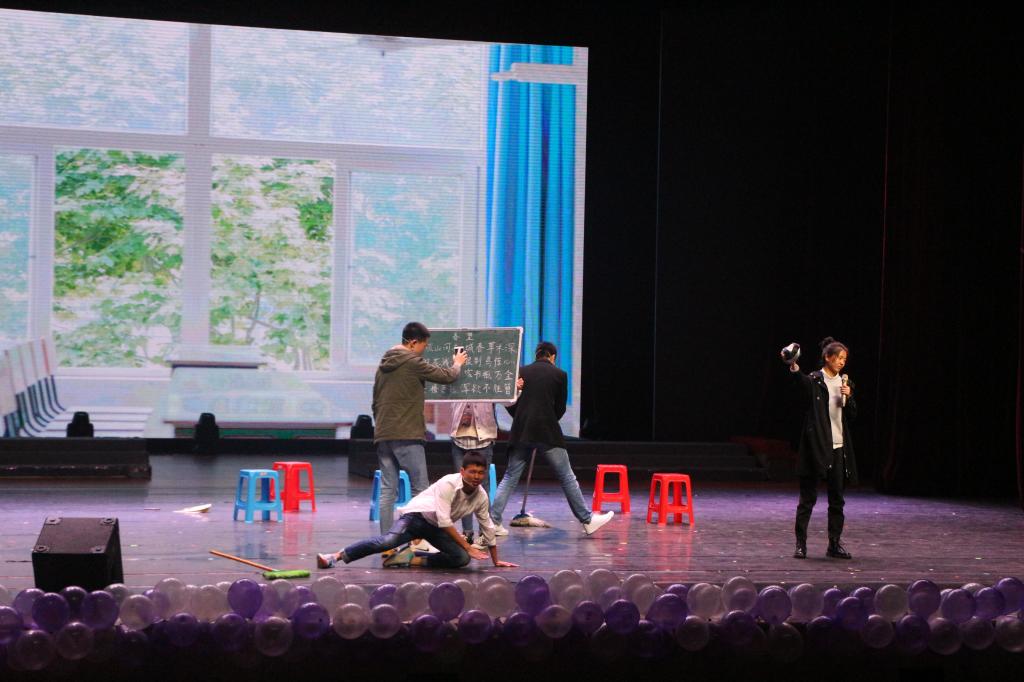 随着令人热血沸腾的音乐响起,晚会在由社团和2017级材料一班带来的武术《双截棍》中拉开了帷幕。节目中那烟火随着双截棍的舞动所放出的绚烂,这是一个惊喜,更是对晚会最好的祝福。紧接着舞蹈《丧尸dangerous》让众人尖叫不已,带我们见识了丧尸元素与激情飞扬的街舞文化碰撞的火花;大学的那些事,大学的那些人和那些情总是让人难以割舍,使在读学子不免想到在毕业时又有怎样的述说?16化师三班主演的《盛夏的果实》生动的展现了毕业季的不舍与泪水;真正的寂静不是天马行空,真正的寂静是思想的静止,是让思想居住在自然的身体中,来自老师们表演的瑜伽《天鹅,力量与美》动作优美,引人入胜,而心似乎也随之变得坚强和寂静。