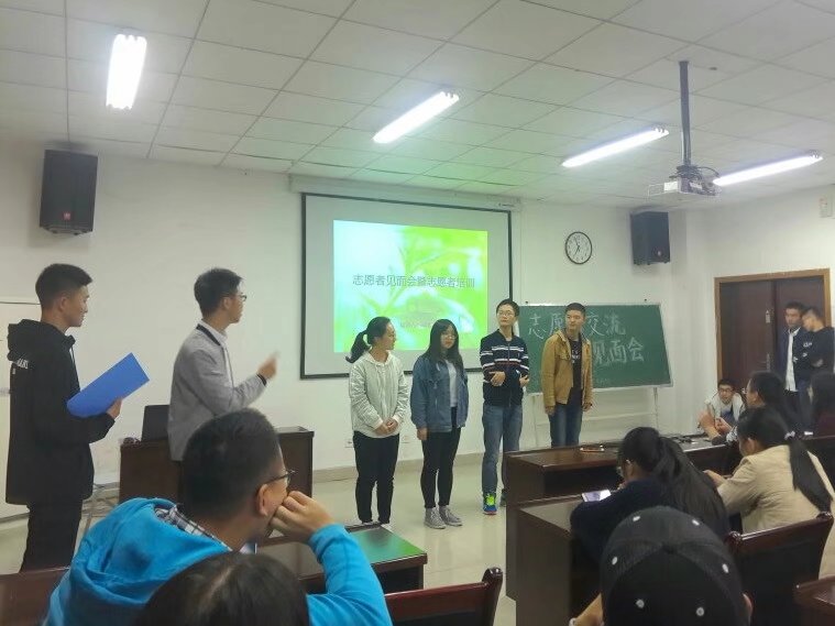 志愿者分队在集贤楼212于晚上7:00举办了交流见面会,一起来分享自己参加志愿服务的经历与感想,畅谈协会的发展。本次大会约有50名志愿者干事到场,来临嘉宾有实践部部长周莆,学生会副主席钟得洪,实践部副部赵雅琳和实践部副部长罗攀。整个活动由何灿禄主持。
