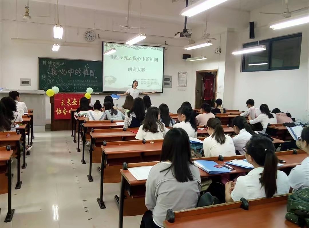 未来教师协会在弘德楼12104举行了“诗韵长流之我心中的祖国”诗朗诵比赛的决赛。出席本次比赛的嘉宾有播音主持技能大赛一等奖获得者丁佳宜学姐,梦想公益协会副会长樊利学姐,梦想公益协会会长助理李亚楠学姐,少妇白洁