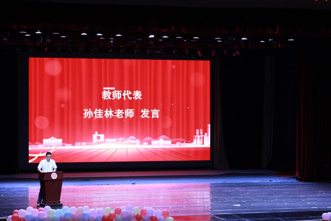 教师代表孙桂林向2024届全体毕业生表示最热烈的祝贺,鼓励同学们在未来的日子不忘初心,将所学知识转化为实践力量,在各自的岗位上发光发热。