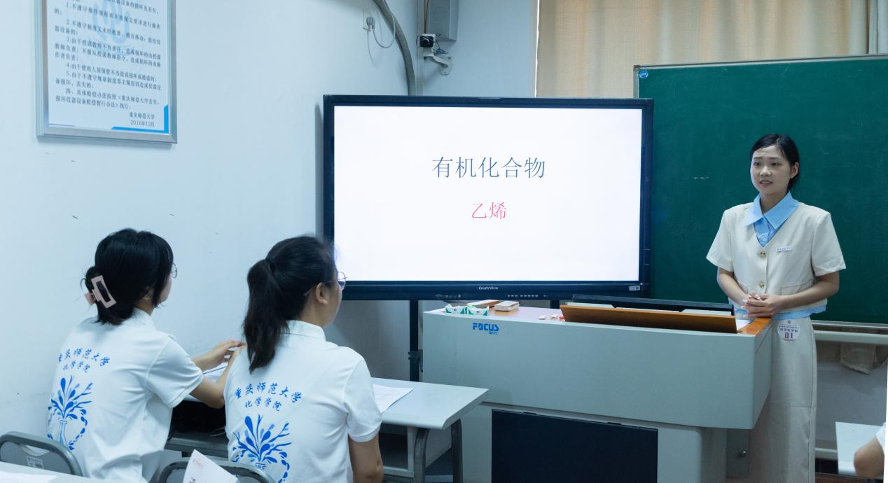 教学设计作完成后,选手们依据抽签顺序进行即席演讲和模拟上课两个环节。3分钟的即席演讲,选手们用生动的语言和清晰的逻辑得到观众们的点头称善。在模拟上课的环节,选手们将内容深入浅出,展示他们对教材优秀的理解;化学组的选手也凭借扎实的化学基础,精准把握重点和难点。基本功展示的选手也凭借优美精彩的舞蹈等才艺大展身手。