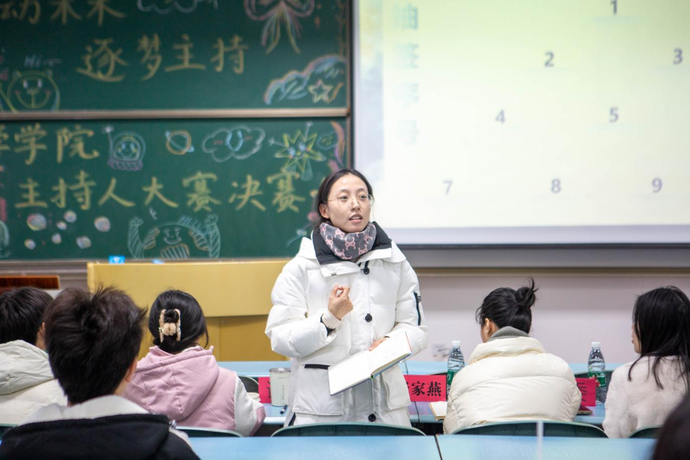 评委现场点评环节中,张家燕老师从音量控制、肢体语言、表演完整性三个方面为同学们指出主持的不足之处,同时鼓励同学们在大学中积极展示自己,开拓一方新天地。评委代表发言指出,选手们在主持过程中要具备控场的意识,并提倡大家注重语音语调和眼神交流,以此达到更好的效果。