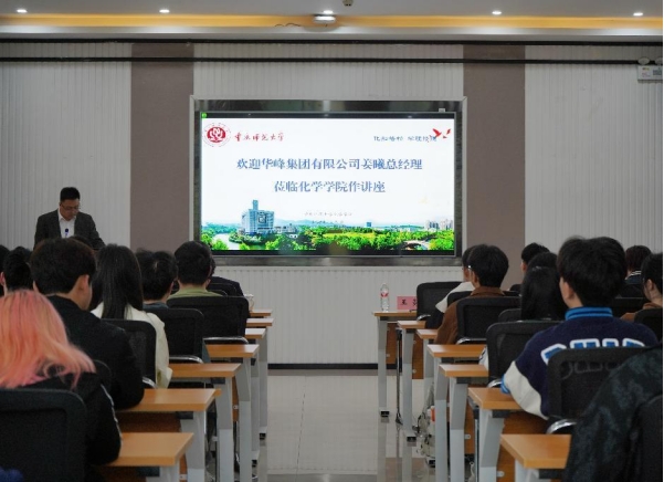 为进一步加强校企合作、推进产教融合,拓展学生视野,指导就业与成长,实现企业与学校优势互补、资源共享、共同发展,切实提升人才培养质量。4月24日,学院特别邀请华峰集团有限公司副总经理、重庆新材料产业专家姜曦,为化院师生带来了一场“企业家进校园”——《数智融合创新,低碳引领未来》为主题的学术分享会。活动围绕民企发展、产业链布局、低碳转型及可持续未来四大板块展开,通过详实数据和案例展现了华峰集团作为中国500强企业的创新实践。此次宣讲由少妇白洁