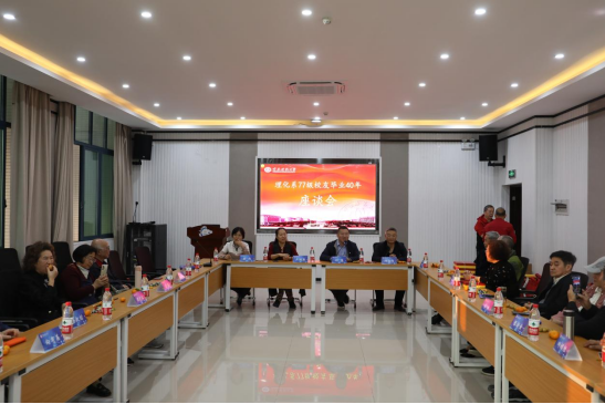 77级校友返校表示热烈欢迎,向校友们介绍了学校近年来取得的成就和学校事业发展情况,同时对学校校友工作开展以及各地校友办事处建设情况进行了详细说明。牟萍主任介绍了学校对校友走访、信息收集以及校友返校手续办理等情况。校友田一平代表化学系发表对母校的情义和对老师的感恩,并向学校学院赠送题为“惟宏隆德,情系教育”的化学系物理系77级毕业四十周年纪念牌。