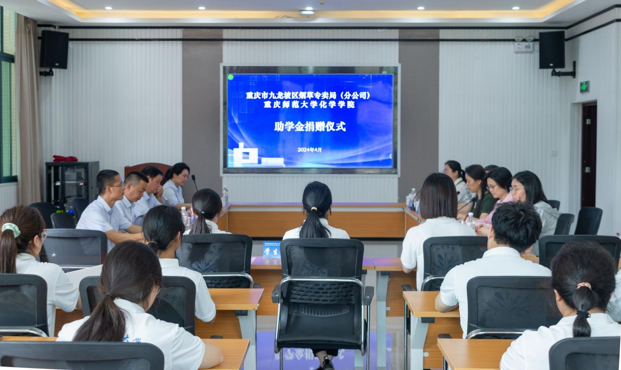 在求是楼202会议室举行重庆市九龙坡区烟草专卖局(分公司)定向资助困难学生助学金捐赠仪式。重庆市九龙坡区烟草专卖局党组书记、局长、经理范毅,党组成员、纪检组长董东,少妇白洁