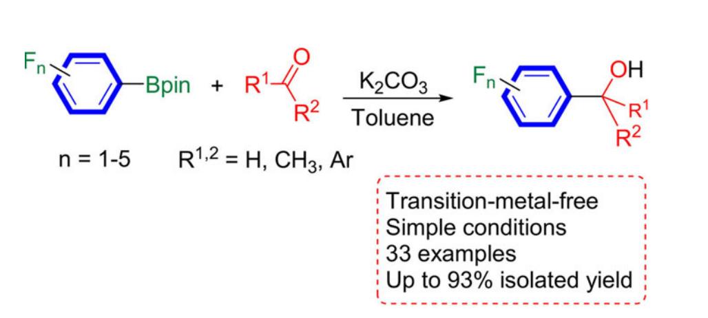 罗小玲副教授与德国维尔茨堡大学Marder课题组开展合作研究,研究成果近期以题为“Transition Metal Catalyst-Free, Base-Promoted 1,2-Additions ofPolyfluorophenylboronates to Aldehydes and Ketones”在国际顶级期刊Angewandte Chemie(影响因子15.336)上发表,罗小玲副教授为论文的共同通讯作者。该论文报道了一种新颖、高效的二级醇或三级醇合成方法,由多氟取代苯硼酸酯与醛或酮通过1,2-加成反应进行制备,该方法无需昂贵的过渡金属催化剂,且底物范围广,甚至空间位阻较大的酮也能反应并生成相应产物,是二级醇和三级醇合成领域的重大进展。