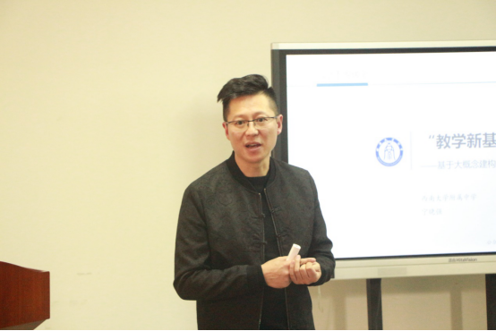 讲座伊始,宁晓强老师以郑长龙教授基于大概念教学在中学课堂的落地实施作为引入,从火的使用逐步引引出大概念教学的目的——让学生在实践探究中培养化学学科核心素养。宁晓强老师深处浅出的讲解,引领同学们了解化学学科大概念的深刻含义,并通过列举国外学者对于大概念的代表性观点,让同学们明白了大概念教学的功能,即通过本质理解,观念形成发展知识联结,由此自我构建,形成终身素养。
