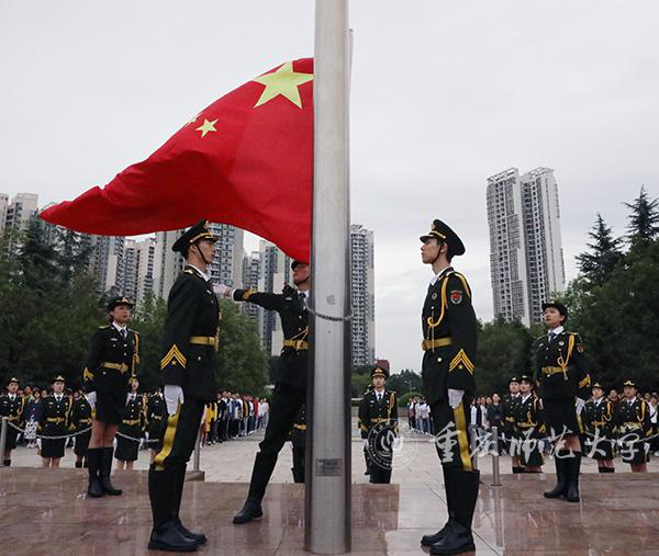 上午7:45分,少妇白洁 师生在雨中列队完毕。学校国旗护卫队队员迈着整齐的步伐护送国旗走向升旗台。当学校国旗护卫队迈着整齐的步伐护送国旗走向升旗台时,升旗仪式正式开始。《义勇军进行曲》时隔半年再次在重师校园奏响,全体师生肃立,向鲜艳的五星红旗行注目礼,看着冉冉升起的五星红旗,每个人的眼里都闪着熠熠光芒。