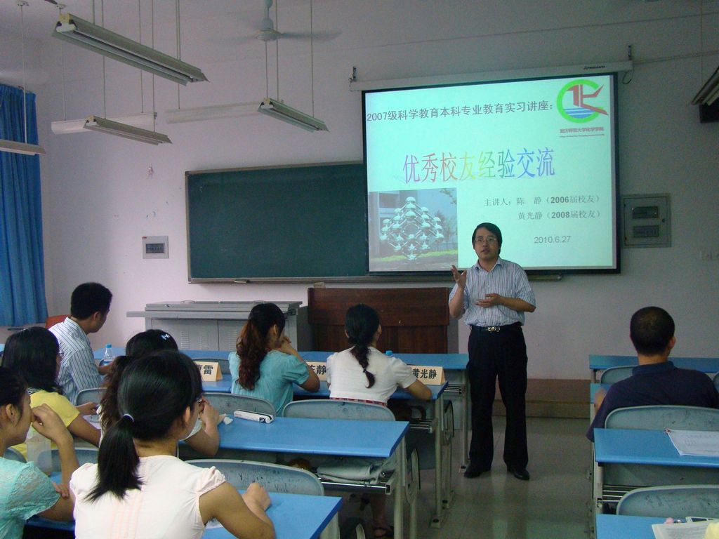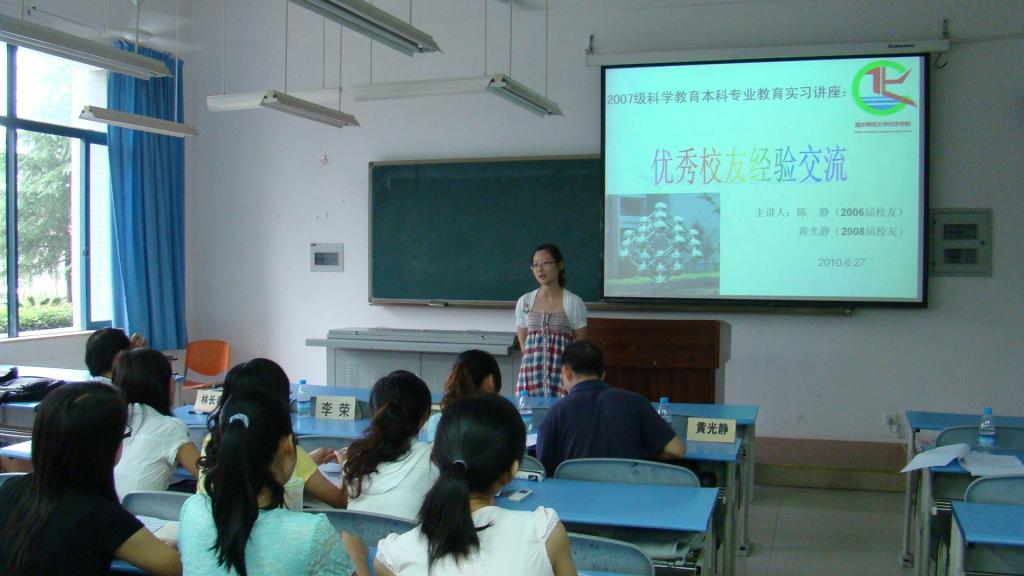 06、08届科学教育本科专业优秀毕业生陈静和黄光静做主讲嘉宾,本次讲座由科学教育本科专业负责人林长春教授担任主持,少妇白洁