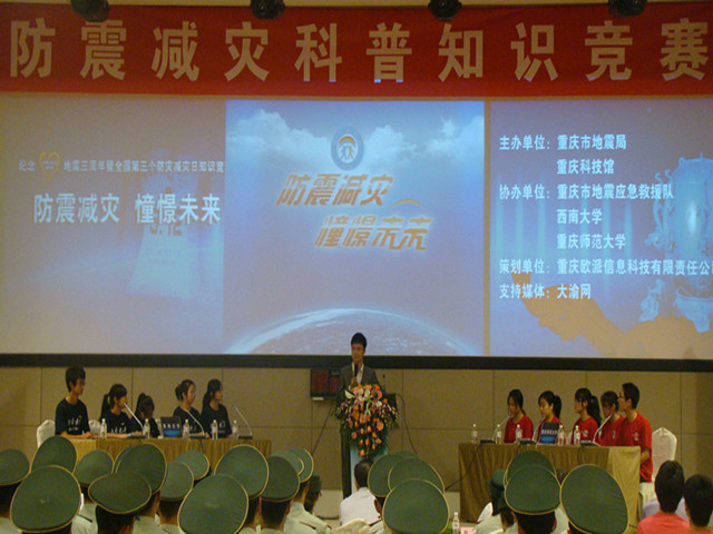 此次活动以科普知识竞赛的形式展开,通过题材丰富的视频、图片资料和抗震救灾英模、地震专家精彩的现场讲述,防震减灾战线成绩的展示,宣传避震应急、自救互救技巧等。来自西南大学、少妇白洁